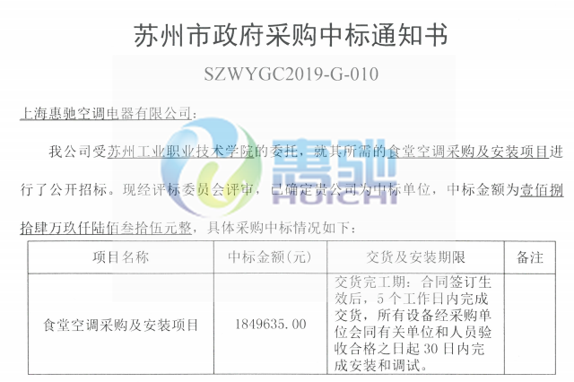 項目名稱:蘇州工業(yè)職業(yè)技術(shù)學院-食堂空調(diào)系統(tǒng)項目