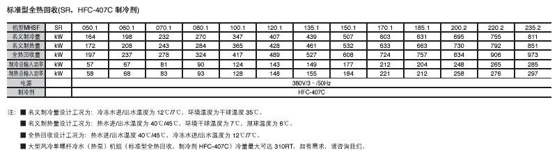 制冷劑:HCFC-22 HFC-407C