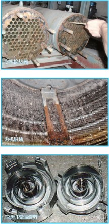 內部污垢產生的機理相對復雜,主要是制冷劑和油的分解。大部分制冷劑雖然很穩定,但是在長時間的運行過程中,有一小部分冷媒會不可避免的發生分解,邊城酸、誰等各種雜質。油也通常如此,不管是礦物油、烷基苯油、脂類油都會在不同溫度和運行狀況下分解成各種雜質并游離在系統中。